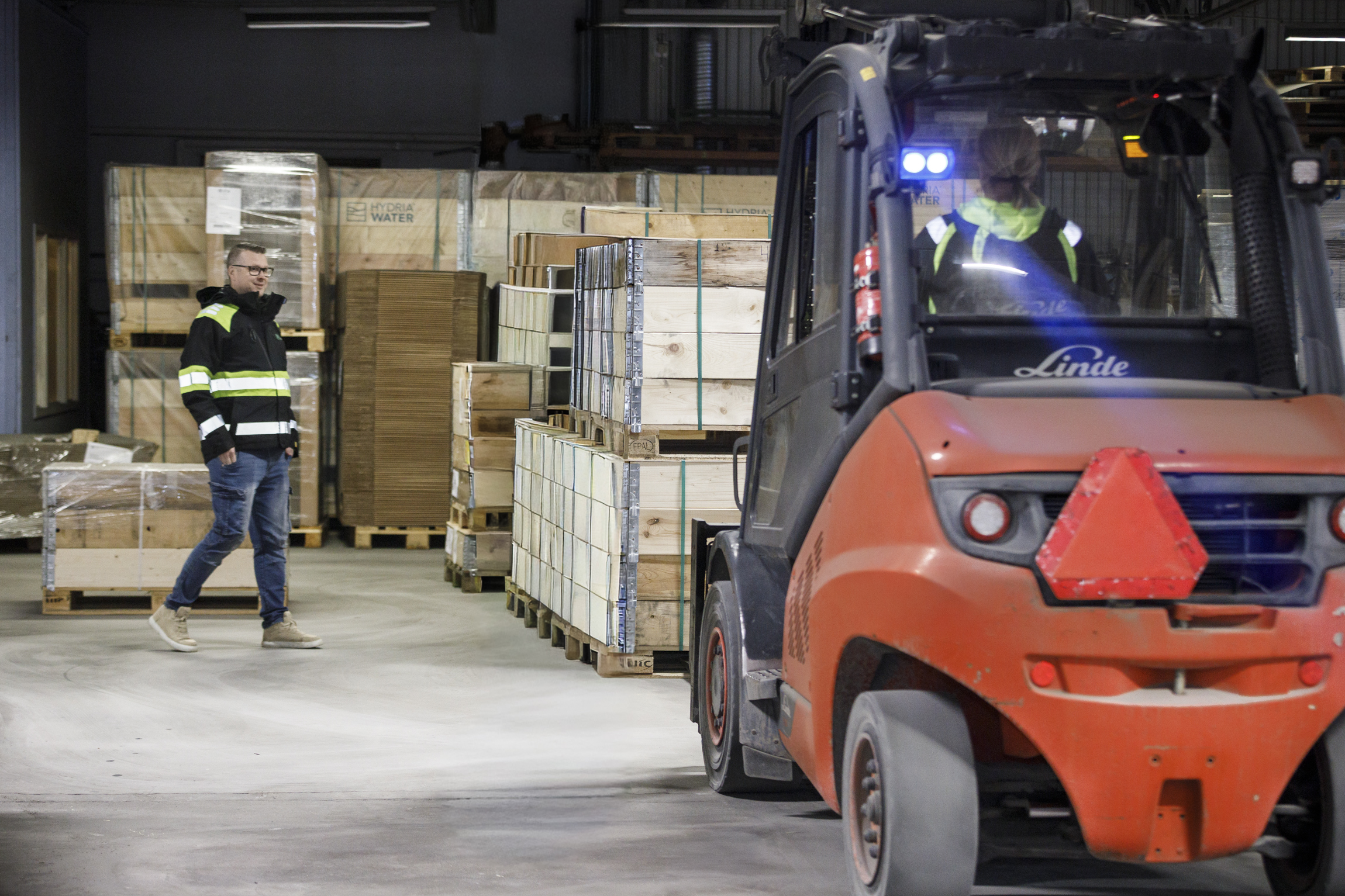 hanterar gods med omsorg och precision